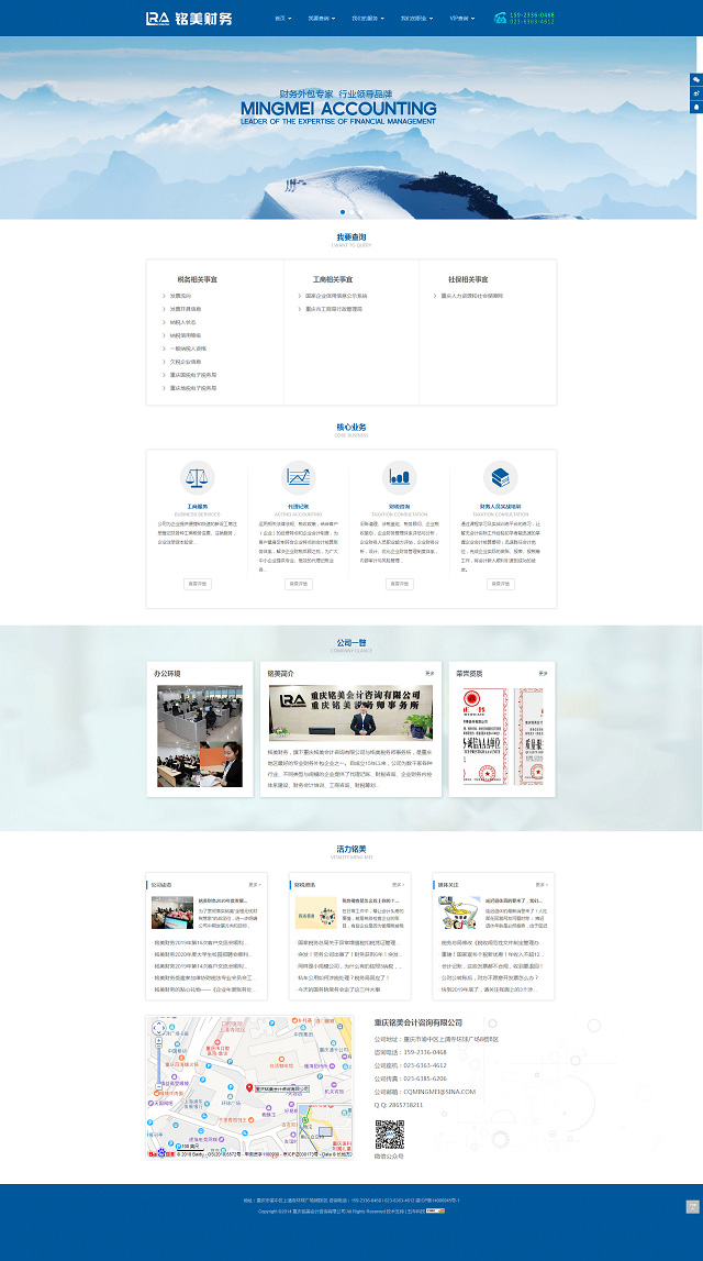 铭美财务,旗下重庆铭美会计咨询有限公司与铭美税务师事务所,是重庆地区最好的专业财务外包企业之一。自成立15年以来,公司为数千家各种行业、不同类型与规模的企业提供了代理记账、财税咨询、企业财务内控体系建设、财务会计培训、工商咨询、财税筹划、税务鉴证以及管理咨询等专业服务,市场范围覆盖重庆、四川、贵州与武汉等地区。